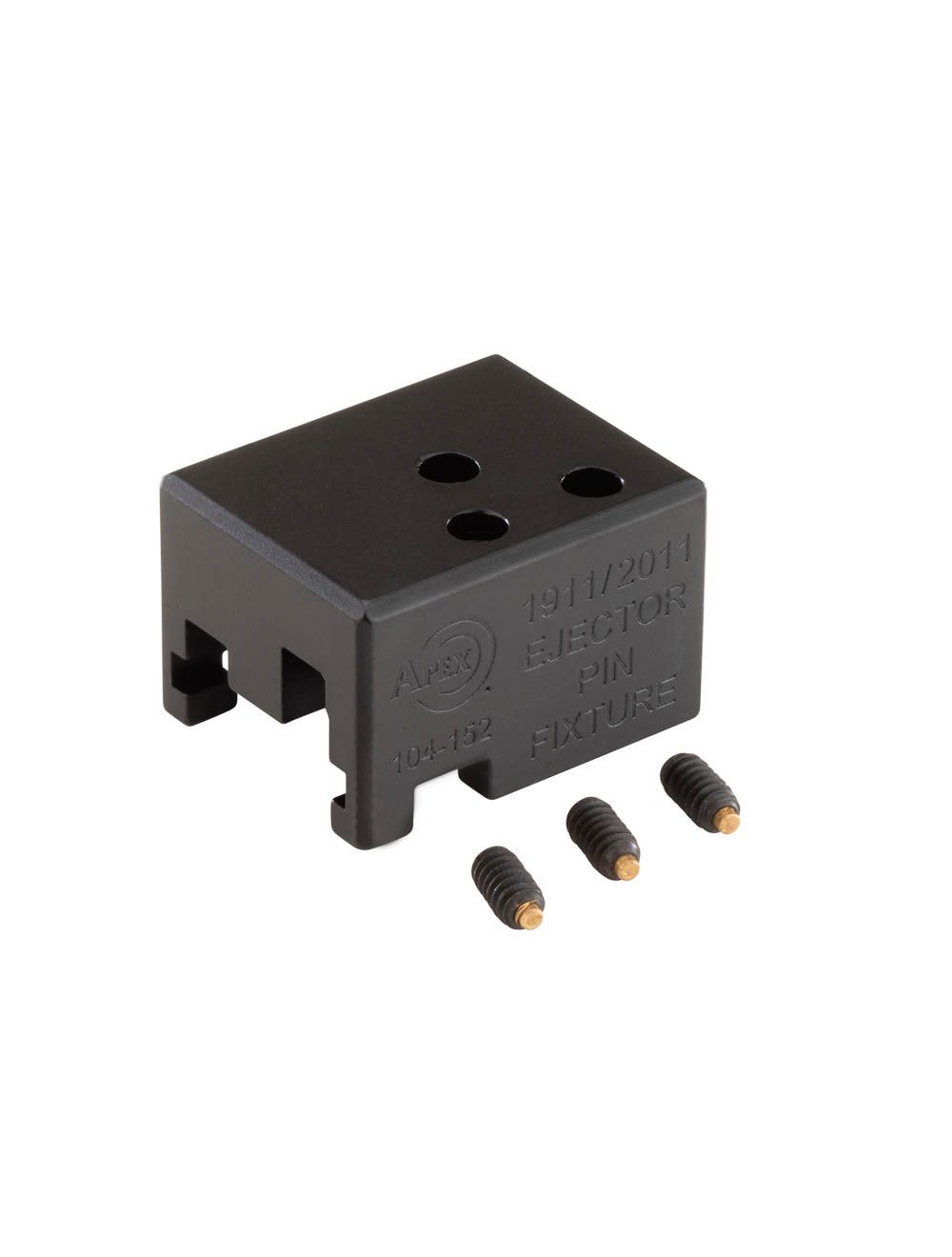 This is an ideal addition to the workbench or armorer's toolbox for anyone building or servicing the 1911/2011 pistol. The Apex Ejector Pin Fixture is designed to securely hold the ejector to the frame of any 1911 or 2011. This ensures that the proper relationship of the Ejector/Frame/Ejector Pin hole is maintained while fitting a new ejector. The Apex Ejector Pin Fixture is machined from a billet of steel and Melonite finished for enhanced durability. Brass tipped set screws to position the ejector without marring the ejector or frame.